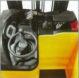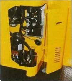 The battery is brought into positionfor maintenance by a reach movement of the mast. Only when the battery is retracted and locked in place will it be possible to drive at maximum speed again but it is still possible to move at a reduced inching speed for positioning purposes. Battery changing is also possible using an optional integral battery roller track with changing frame.